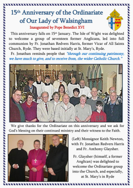 - Ordinariate – 15th anniversary